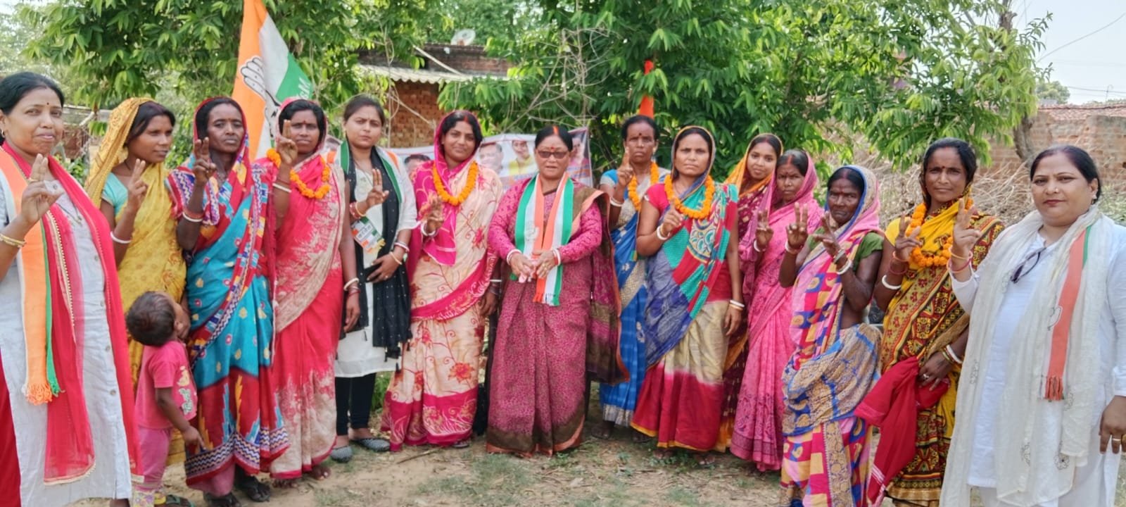 जन सम्पर्क के दौरान दर्जनों महिलाओं ने महिला कांग्रेस का दामन थामा। जिसे जिलाध्यक्ष सीता राणा ने माला पहनाकर स्वागत किया।
